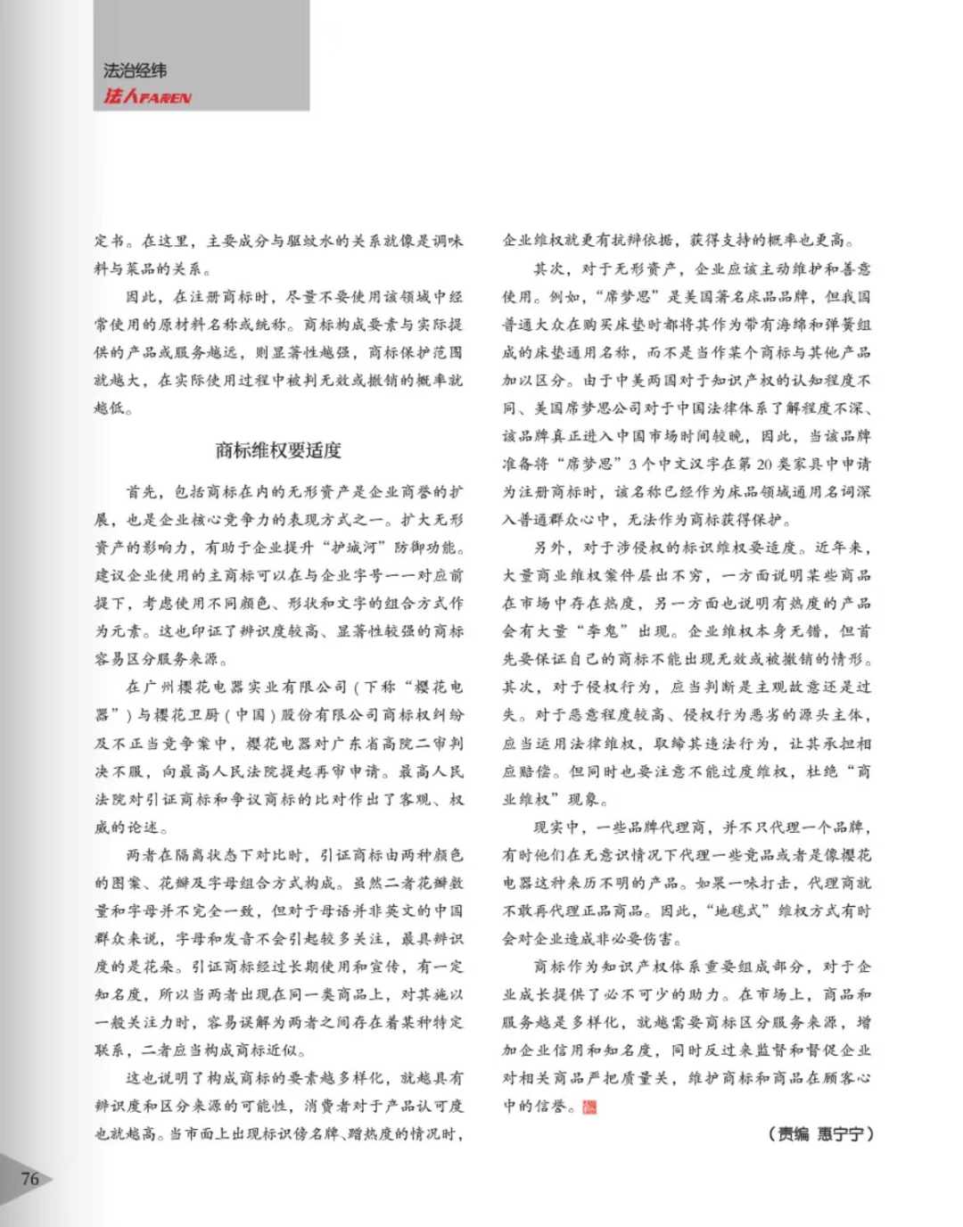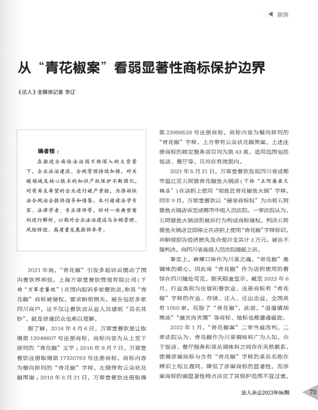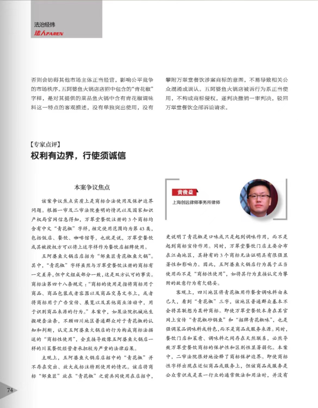 黄冈辉知简讯 | 辉知队黄俊益律师应“法治日报”旗下杂志邀请,就“青花椒”案发表专家点评